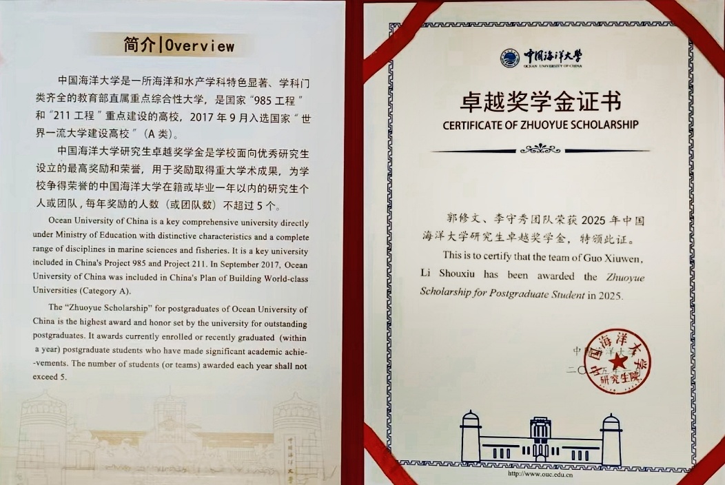 学院研究生郭修文、李守秀获2025年研究生卓越奖学金