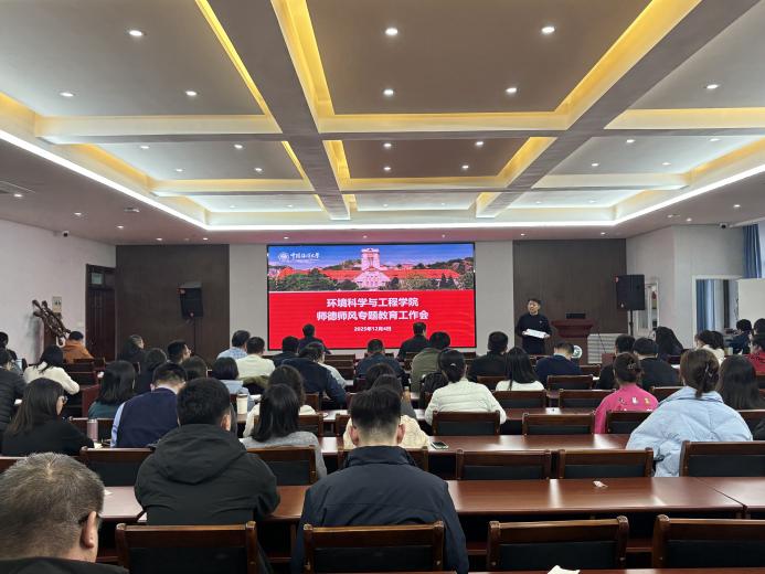 为全面贯彻师德师风建设工作要求,进一步规范教师履职尽责行为,落实立德树人根本任务,环境科学与工程学院于2025年12月4日在环科楼 A519 会议室召开师德师风专题教育工作会,会议由学院党委书记邵长江主持,学院教职工参会。