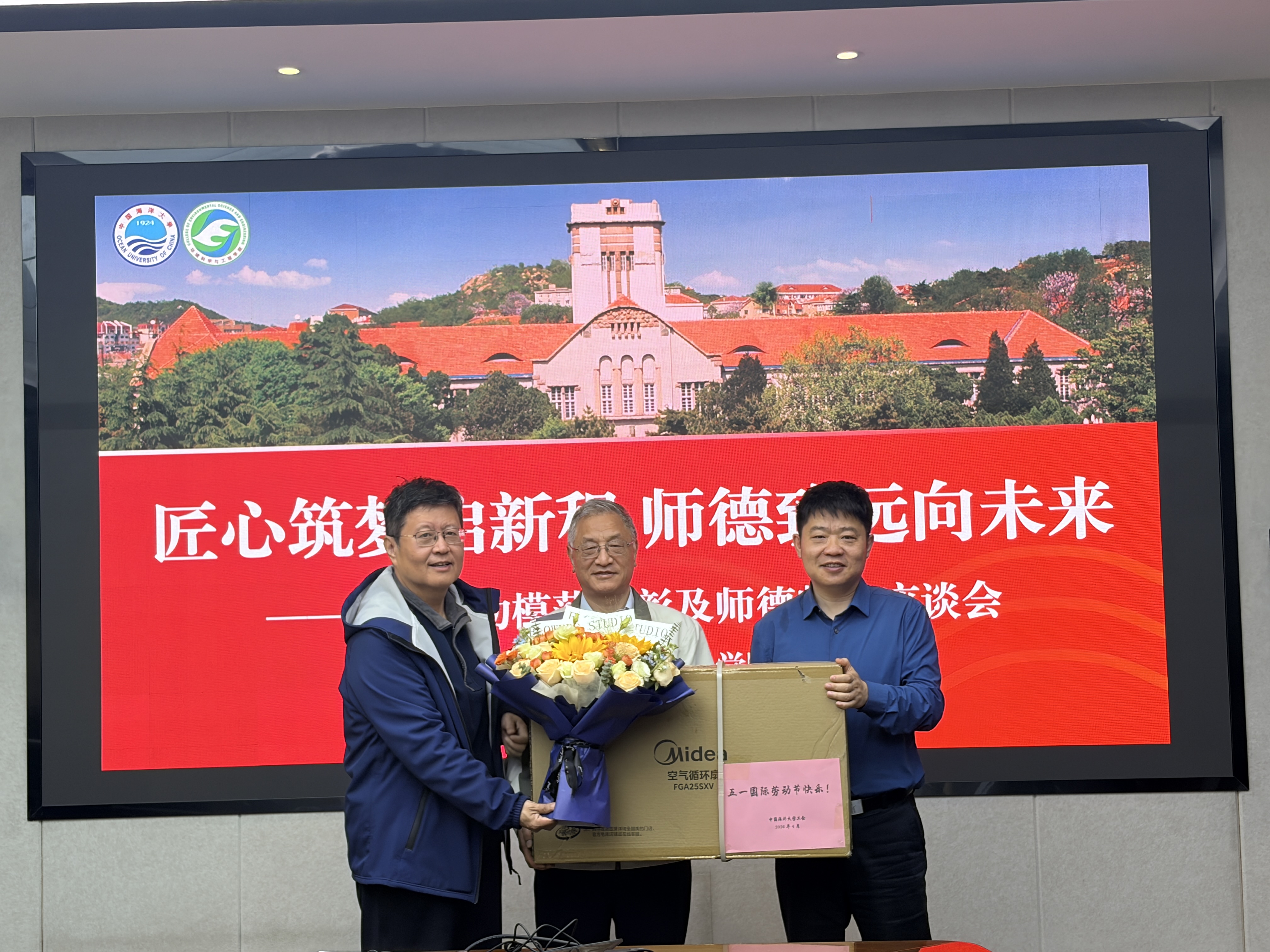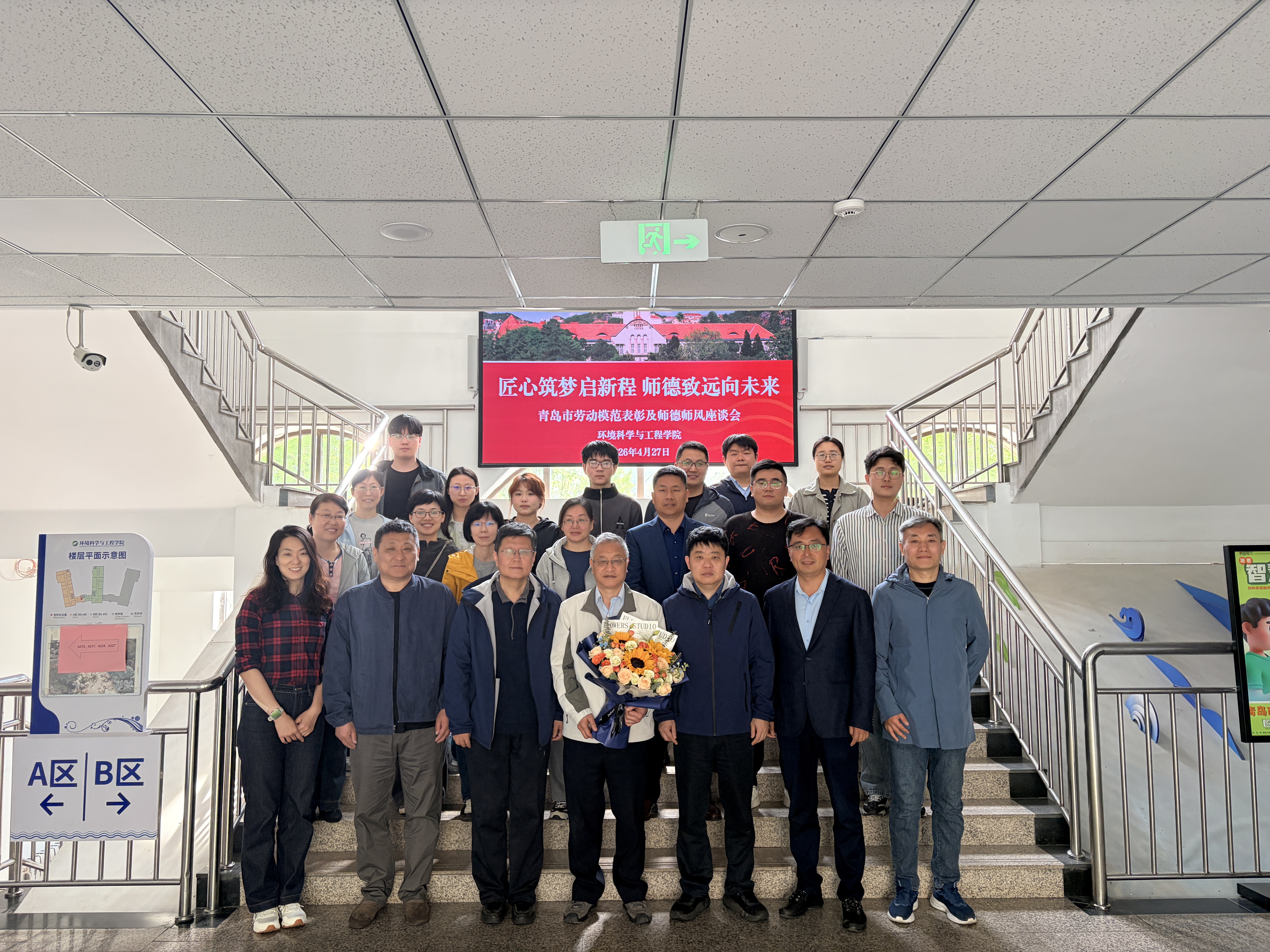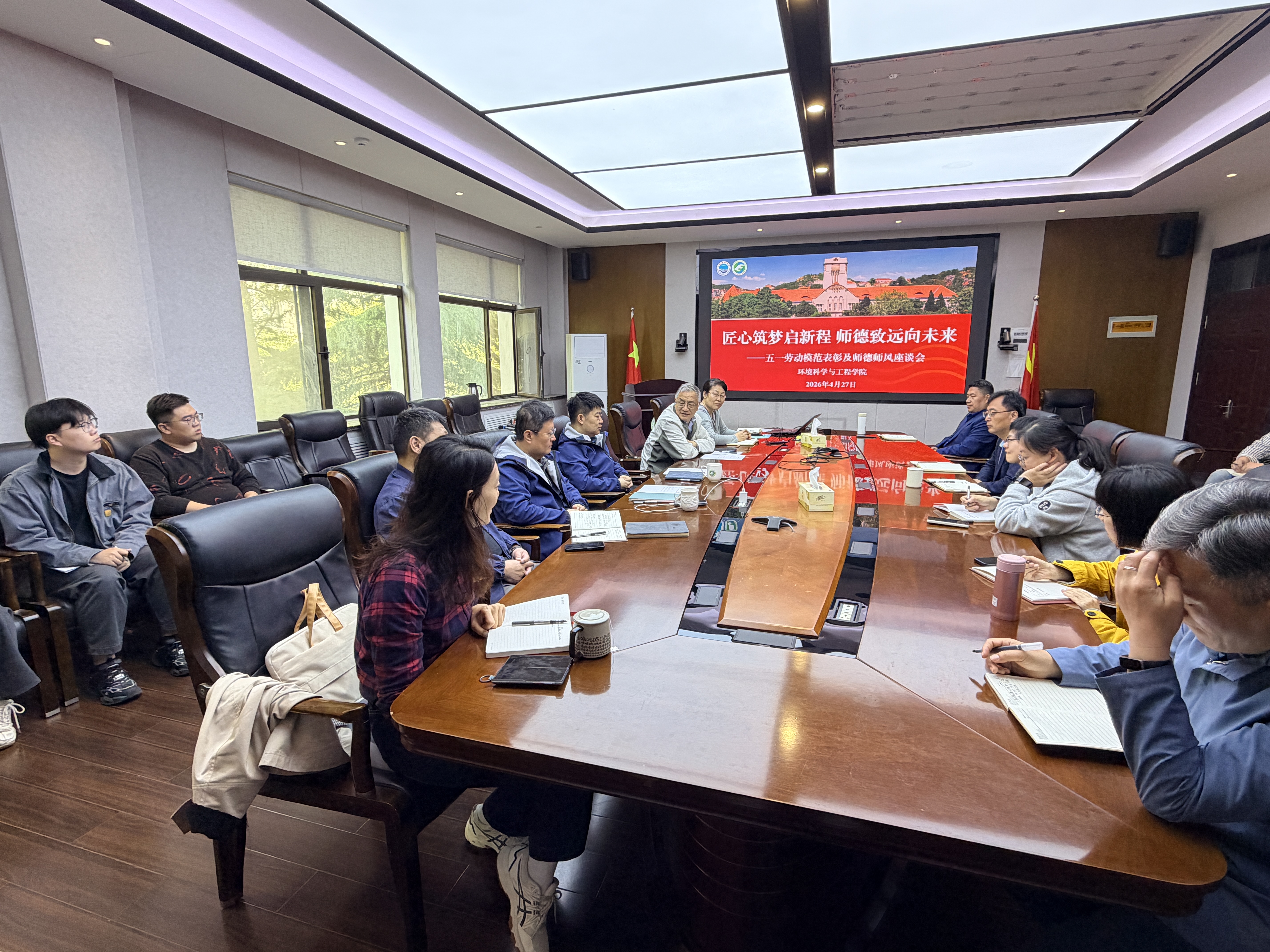 4月27日上午,环境科学与工程学院举行“匠心筑梦启新程 师德致远向未来”师德师风座谈会。学院党委书记邵长江主持会议,院长江文胜,青岛市劳动模范、崇本学院院长高会旺教授出席会议。学院党政联席会成员、新入职教师、归国及拟出国访问青年骨干教师代表、学生代表参加座谈。