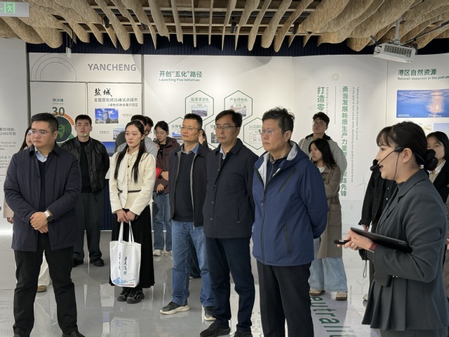 随后,师生参访大丰港零碳产业园。通过实时能碳数据大屏,大家直观了解到园区通过构建“风光氢储”融合的能源体系,已形成覆盖风电全产业链的产业集群。作为国内首个实现绿电可溯源的园区,这里的“渔光互补”项目、万吨级年制氢能力及绿色化工生产线,生动诠释了“能源清洁化”的实践路径。