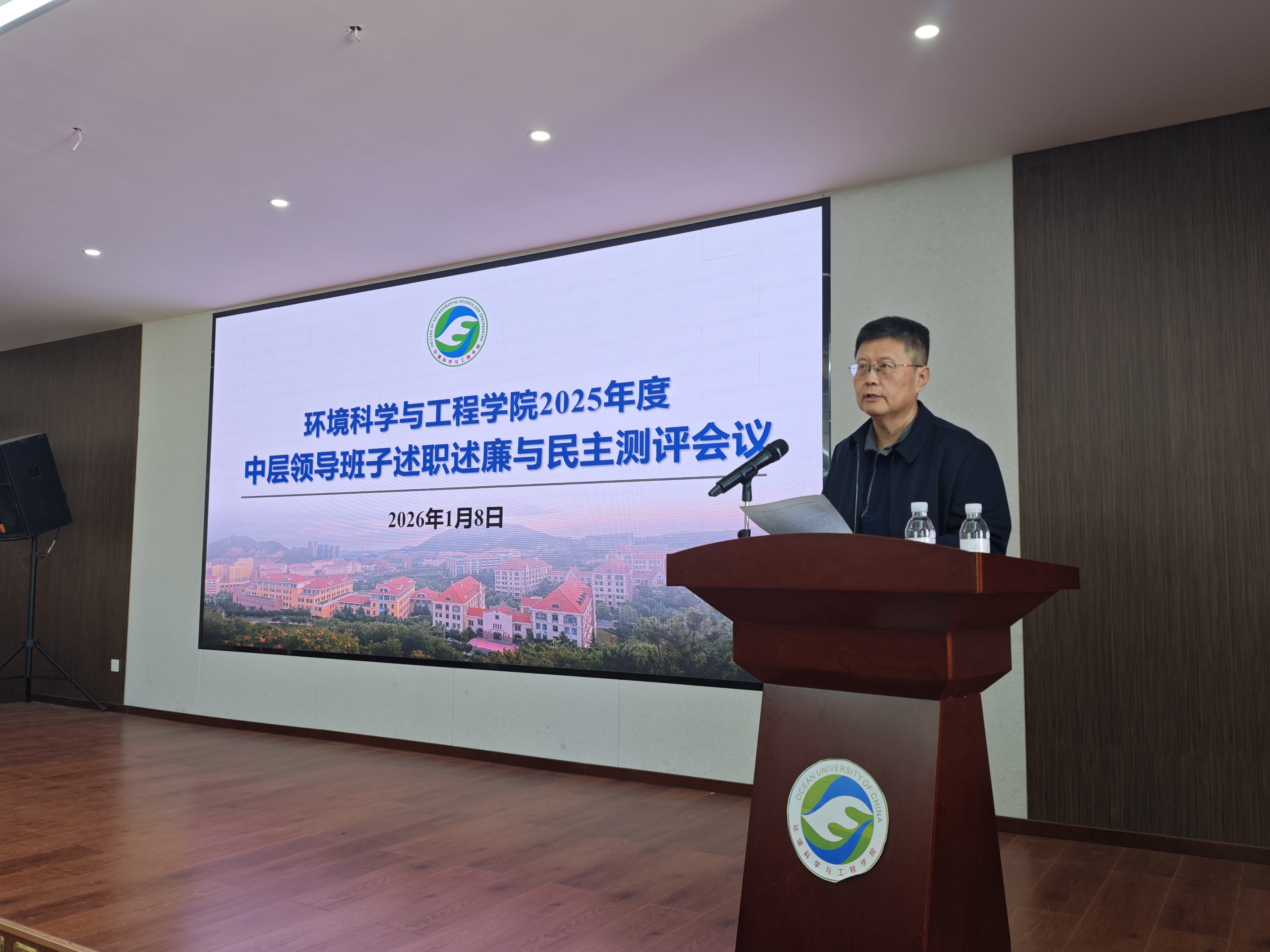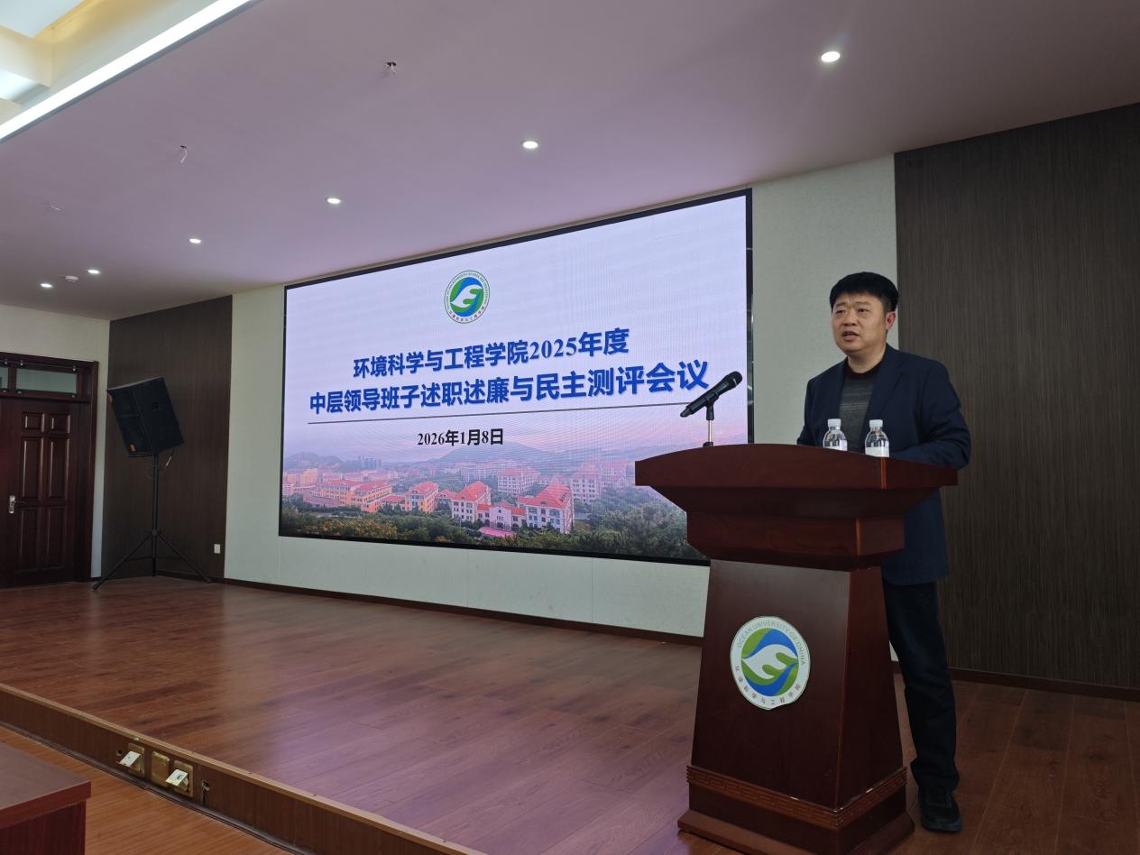 1月8日下午,环境科学与工程学院在A519会议室举行了2025年度学院中层领导班子和个人述职述廉与民主测评会。学院班子成员、全体教职工及学生代表参加会议,大会由学院党委书记邵长江主持。
